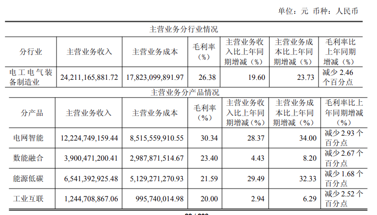 报告期内在新型电力系统构建和新型能源体系建设驱动下,公司紧抓市场机遇,立足技术和产品创新,深耕电力市场,新一代调度、配电自动化等领域核心产品广泛部署,行业龙头地位不断巩固;加强新兴产业布局,国际业务拓展实现新收获,主营业务收入大幅增长,毛利率水平基本保持平稳。